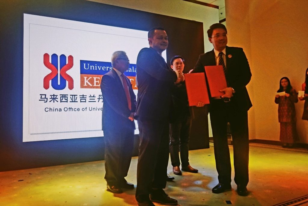 马来西亚吉兰丹大学一带一路商学院成立暨马来西亚吉兰丹大学中文官网、中国代表处启用 2019年3月2日2019年3月2日 News 2019年2月23日,由马来西亚吉兰丹大学、马来西亚中国校友会-中国旅马同学会共建的一带一路商学院成立仪式在马来西亚驻华大使馆隆重举行。于此同时,吉兰丹大学中文官网、中国代表处也一同启用。 马来西亚吉兰丹大学校长Azizi教授上台介绍了马来西亚高等教育、马来西亚吉兰丹大学的基本情况,历史沿革,办学特色,校园环境等,表示“吉兰丹大学作为马来西亚唯一创业型学府,欢迎中国学生赴马求学,也期待吉兰丹大学国际合作、中马高等教育合作乘风破浪,勇往直前”。 讲话结束了,马来西亚驻华使馆教育处候春兴参赞、马来西亚中国校友会王吉会长、Azizi校长共同启动了马来西亚吉兰丹大学一带一路商学院、马来西亚吉兰丹大学中文官网、中国代表处。全场嘉宾见证了启动仪式。 参加活动的贵宾还有广西财经学院副校长曾凡平先生、西安科技大学高新学院董事长孙龙杰先生、唐山学院副院长尹海华先生、马来西亚吉兰丹大学副校长拿督Hj. Ibrahim bin Che Omar博士、马来西亚玛拉工艺大学副主任Wan Irham Ishak博士等100余名来宾。 admin See author's posts